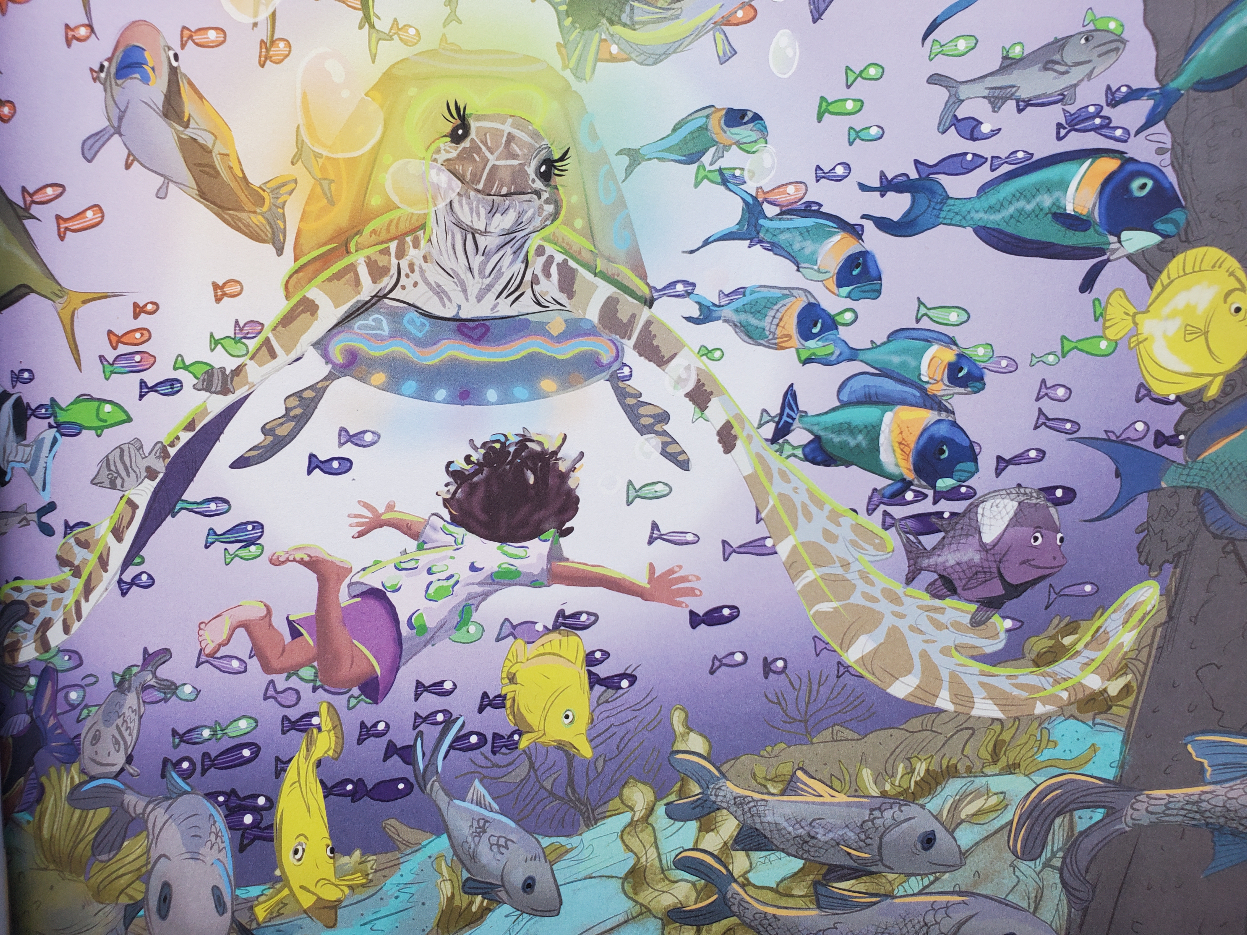 The Great Global Pause is about a Grandmother Turtle and a child who travel down to the bottom of the ocean together in a protective bubble to have a powerful conversation about what happened for the humans, the creatures, and the earth during the pandemic. They share tools and wisdom about taking better care of ourselves, each other, and the earth.